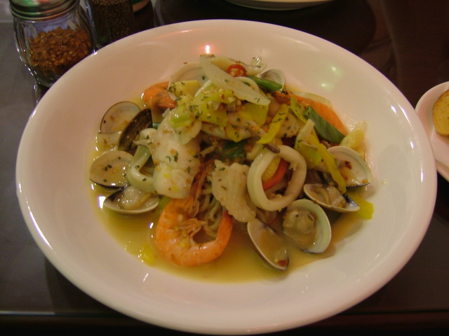今天我點的是辣味白酒海鮮義大利麵