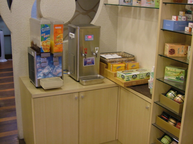 飲料區,除了檸檬紅茶及柳橙汁外,也有自泡的飲料